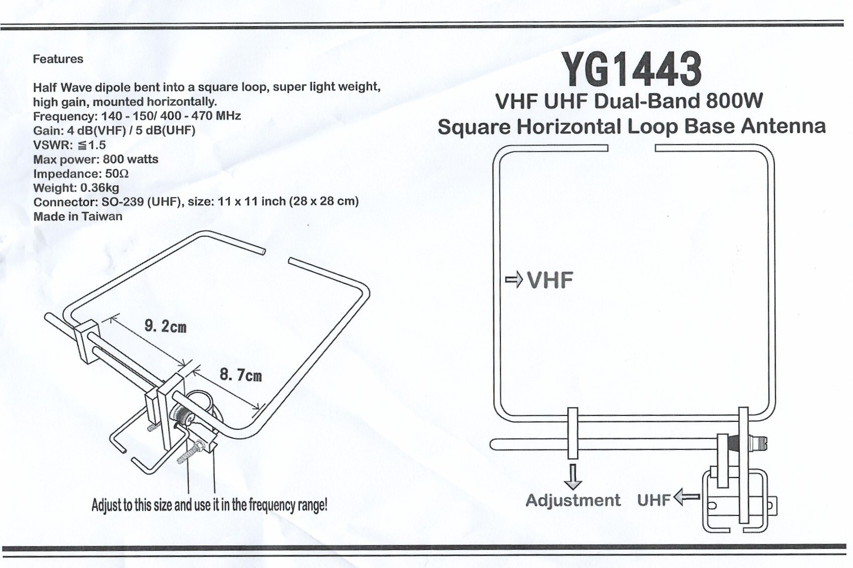 Frequency range: 140~150 / 400~470MHz