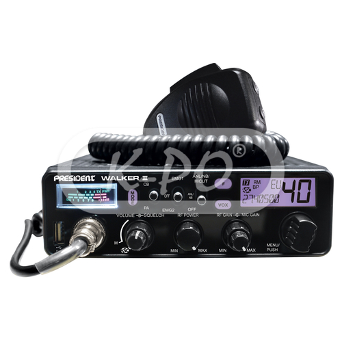 The President Walker II ASC. Is like the original Walker but with an analogue signal strength meter and rotary channel change. However it is a completely different radio, with a multi feature LCD display that include both channel & frequency readout. New features include: digital SWR meter, 7 colour display, variable power, USB charge socket, roger bleep, talk back & electret/dynamic mic selection.